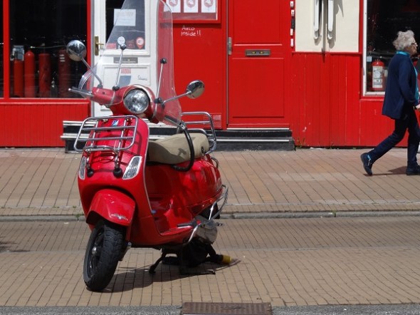 De baas van restaurant de Oude Brandweer nam een scooter in bedrijfsrood: