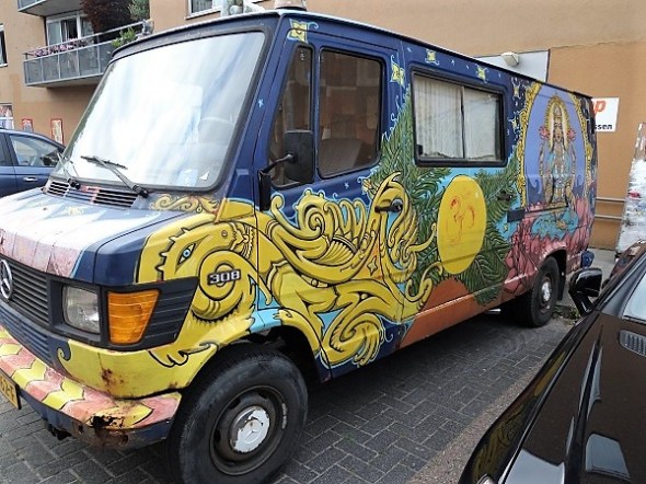 Geplaatst op: 15 juli 2018 Hoort bij: Stad nu 3 reactiesHet hippiedom is onuitroeibaar, getuige dit vehikel aan de Theodus Niemeyerstraat: