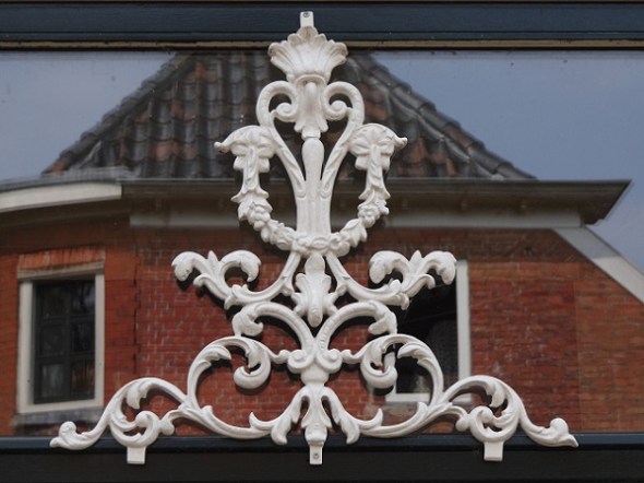 Snijwerk in het bovenlicht van havencafé Ezinge: