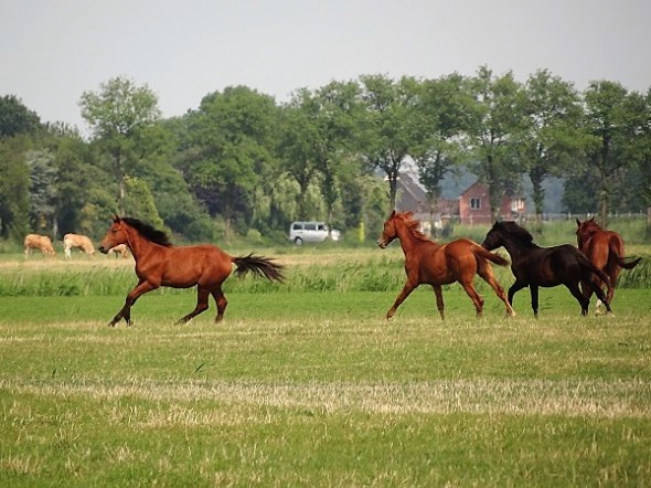 Tussen Hekkum en Adorp. Zitten ze zich een beetje uit te sloven met dit weer: