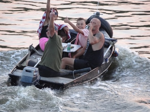 Drinking and driving….Wat een gezellige lui in die boot. Was de vinger voor jou ?