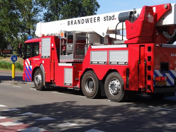 Terwijl de ladderwagen postvatte op de middenstrook van de Zuiderweg: