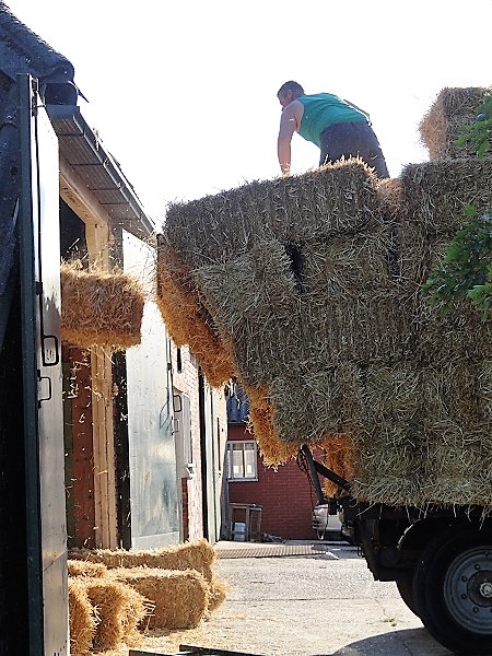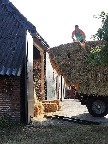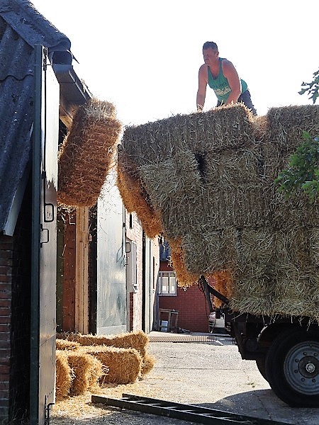 Ik was zo gefixeerd op dat strogruis, dat ik thuis pas zag hoe hachelijk de positie van de man bovenop de wagen was. Ik hoop maar dat dit goed is gegaan.