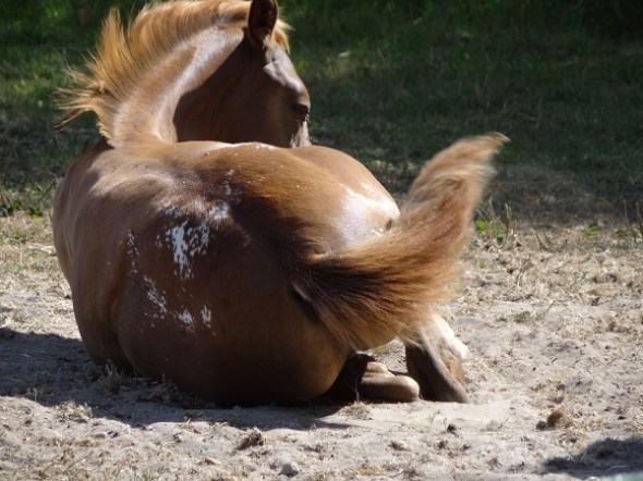 Foxwolde – veulen neemt zandbad: