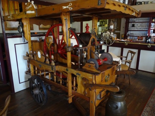 In de gelagkamer van Jachtlust staat een scharenslijperskar, afkomstig van een woonwagenkamp bij Staphorst: