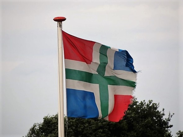 Halfweg Noordbroek en Siddeburen – een rechtgeaarde Groninger vlag mist altijd een reep, want het waait hier altied ja:
