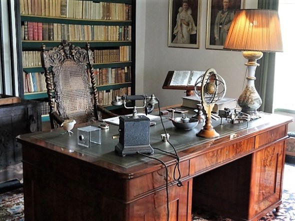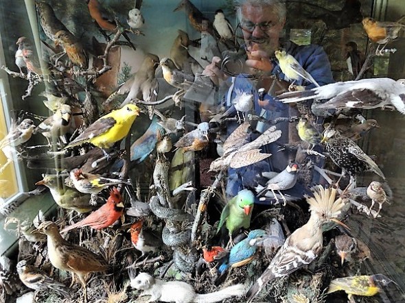 Nieuw voor me – deze rariteitenkast met opgezette vogels, zoals een wielewaal, een vlaamse gaai, ijsvogel en hop. Onderin zit nog een wezel:
