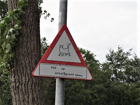 Waarschuwingsbord langs de hoofdweg in Engelbert: