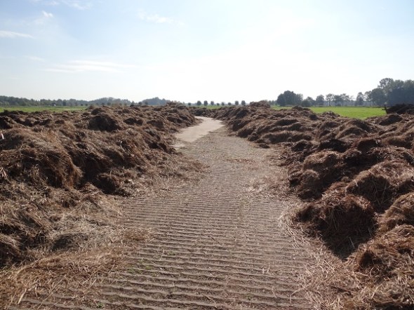 De grote hooi/strobult bij Roderwolde is uit elkaar getrokken na een gevalletje brand door broei:
