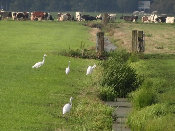 Een familie zilverreiger bij de Zuiderweg naar Zuidhorn (verderop zaten er nog meer):