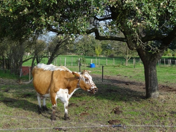 ’t Faan – roodgrimd koetje in boomgaard: