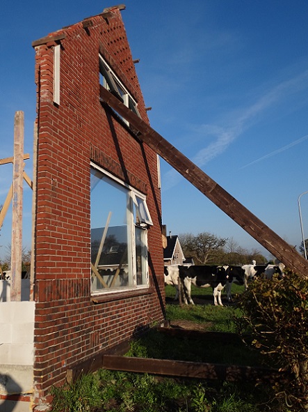 Die voorgevel laten staan is een belastingtrucje om toch een nieuw huis te kunnen bouwen zonder alle bijkomende kosten, wordt vaker gedaan hier in de omgeving.