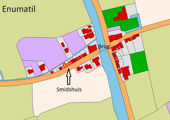 Enumatil, de positie van het smidshuis of de smederij waar de botsing plaatsvond. Bron: http://www.hisgis.nl