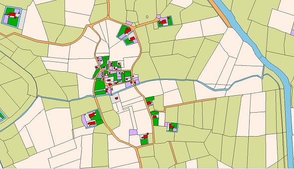 Feerwerd in 1822. Wit is bouwland, groen is weiland. Bron: http://www.hisgis.nl