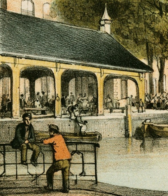 C.A. Last, De Visbanken bij de Hoge der A, ca 1850-1860. Detail uit litho. Collectie RHC Groninger Archieven 1536-3869.