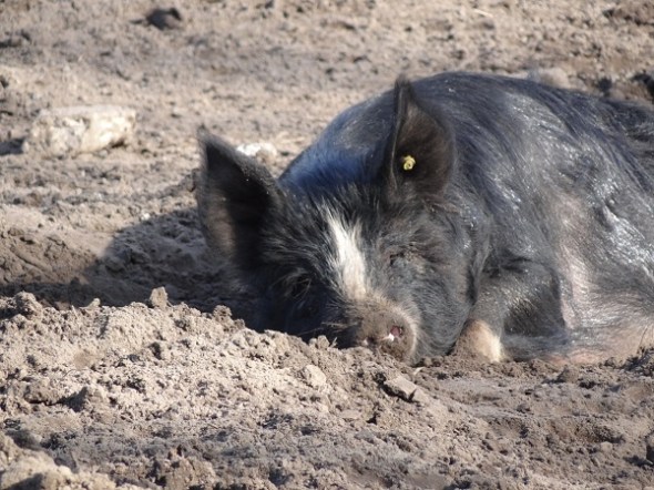 Je gunt toch ieder varken zo’n lekker plekje in het zonnetje, maar helaas………