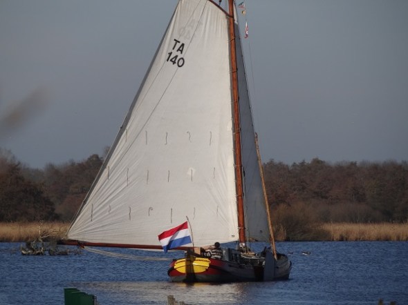 Zultemeer, zo heet die schuit, en ze bevaart het Zultemeer (Leekstermeer):