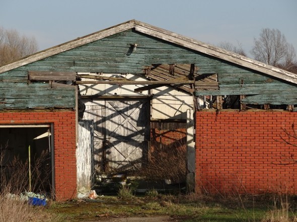 Varkensboerderij in afbraak, bij Bakkerom in de buurt: