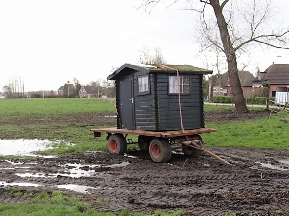 Misschien had de boer een strenge winter verwacht en stond paraat met een ijsvissershut…