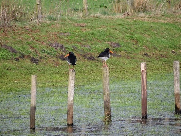 Scholeksters op palen bij de ijsbaan van Paterswolde: