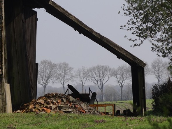Schuur werd door afbraak afdak; vraag me af of er geen asbest in die bult zit: