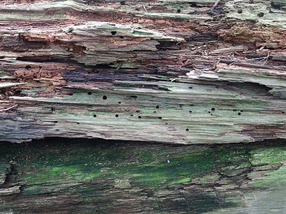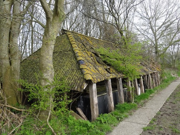 Veel oud hout in het bosje, de eerste specht heeft zich ook al laten horen: