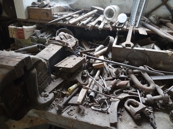 Hamers, moersleutels, oud ijzer en een ping-pong balletje…zorgt voor een mooi stilleven. Je moet toch echt wel van verval houden. Ik zie hier al een griezelfilm in de toekomst… Hopelijk had K er een koopje aan….