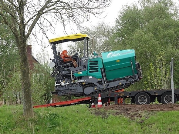 Vooral ook omdat de machine op zijn smalle rupsbanden een pietsie achterover moet kiepen: