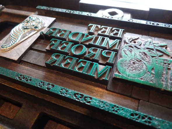In de drukkerswerkplaats was de vrijwilliger net bezig met het drukken van een levenswijsheid: