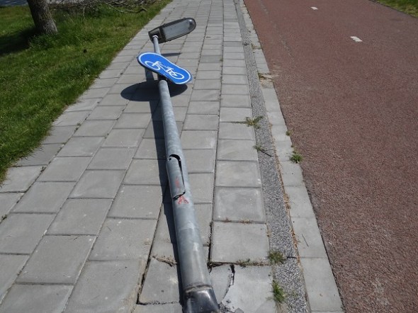In ons dorp werden vorig jaar ook een paar lantaarnpalen omver getrokken. Dat schijnt heus niet zo moeilijk te gaan. Verkeersborden worden met het grootste gemak om een paal heen gedraaid. Doodziek word je ervan. Houdt dat nou nooit eens op?