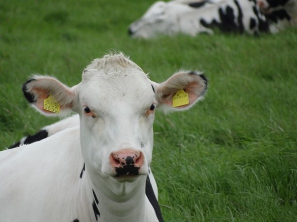 De witte koe trekt een zuinige bek, zo van: kweenie…..die man met die camera….kweenie, hoor…. is dat wel vertrouwd?.