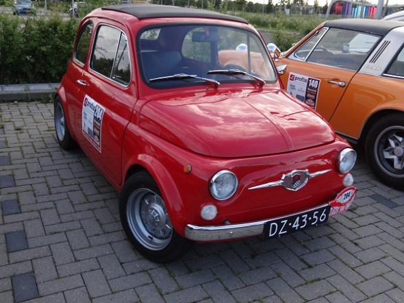 Deelnemers aan een rally voor klassieke automobielen pleisterden bij Van der Valk, tegenover Transferium Hoogkerk. Op het parkeerterrein stonden zo’n 50 oldtimers, onder andere dit doppie van Fiat: