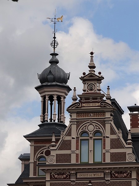 De topgevel en het torentje van Huize de Wolf – let op de windwijzer: