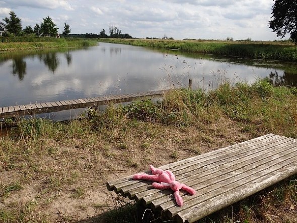 Huiskat op de oever van het Omgelegde Eelderdiep: