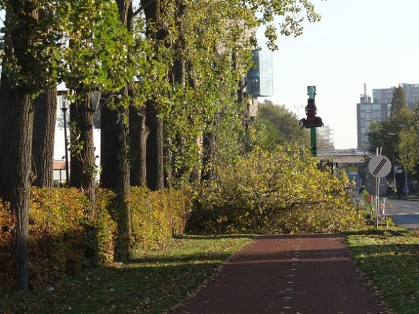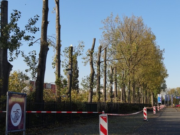 Hoorde gister dat de bomen er sinds het eind van de jaren 60 hebben gestaan, dus om en nabij de 50 jaar oud zijn en dat is inderdaad wel zo’n beetje de uiterste levensduur voor populieren. Volgens een gemeenterapport zouden 37 van de 46 stuks niets mankeren. Net kwam ik er opnieuw langs, maar slechts 1 was grondig uitgehold en van de rest slechts 1 aangetast in het kernhout, dus de kap kwam aan de vroege kant. Ik kan er begrip voor opbrengen, maar blijf het toch zonde vinden. Gelukkig heb ik de foto’s nog die ik af en toe van de rij maakte.