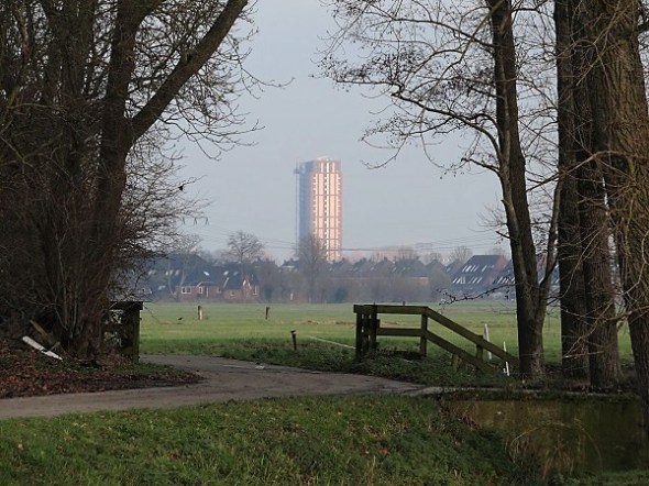 Vanaf boerderij Van Zanten, Leegkerk – de nieuwe toren in de verte: