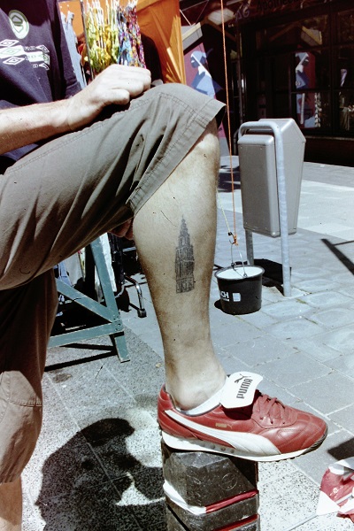 Geplaatst op: 10 december 2019 Hoort bij: Oosterpoort Een reactie plaatsenHet wapen van Hoogkerk als tattoo is hier al eens aan bod geweest. maar ik wist dat ik ook nog ergens een Martinitoren op een kuit had. Die kwam nu eindelijk weer tevoorschijn – ik bleek hem te hebben gemaakt op het buurtfeest van de Oosterpoort in 2005. Overigens komt de drager oorspronkelijk uit Hoogkerk…
