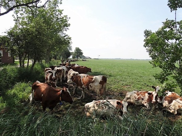 Koeien zoeken massaal het reepje schaduw op bij de Dijkstreek: