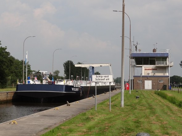 De sluis van Gaarkeuken. Heb je als schipper net je schip vastgezet, moet die schroef er weer uit: