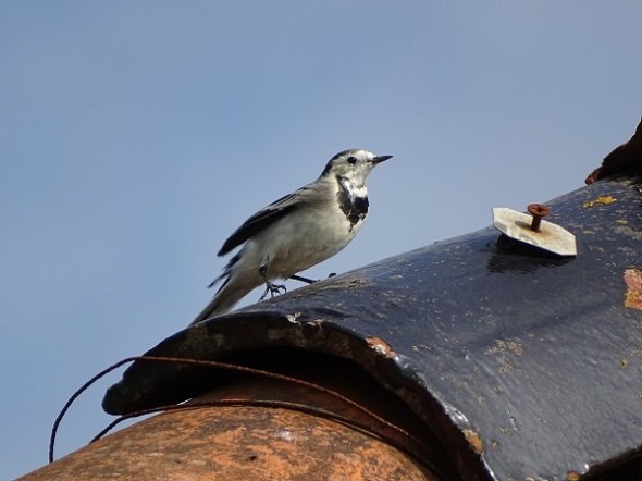 Bij het vervallende boerderijtje van Ranum zat deze kwikstaart op het dak: