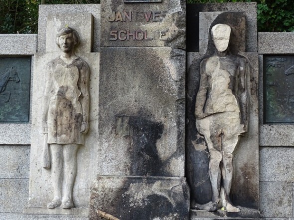 Qua monument is vooral de sportieve mannelijke figuur beschadigd. Hij lijkt weggelopen van een oorlogsmonument. Eigenlijk vind ik het wel wat hebben: