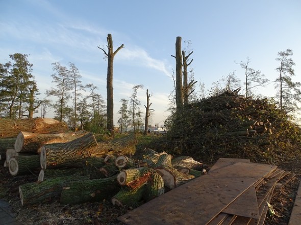 Het populierenbosje bij de Gideonbrug was goeddeels gerooid: