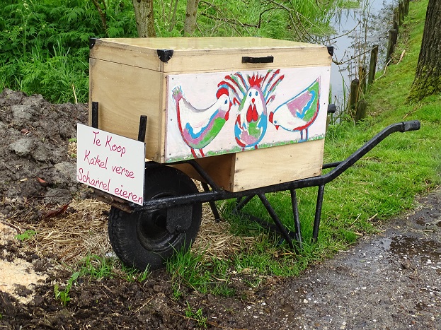 Stukje huisvlijt ter promotie van “kakelverse scharreleieren” op de Feerwerdermeeden: