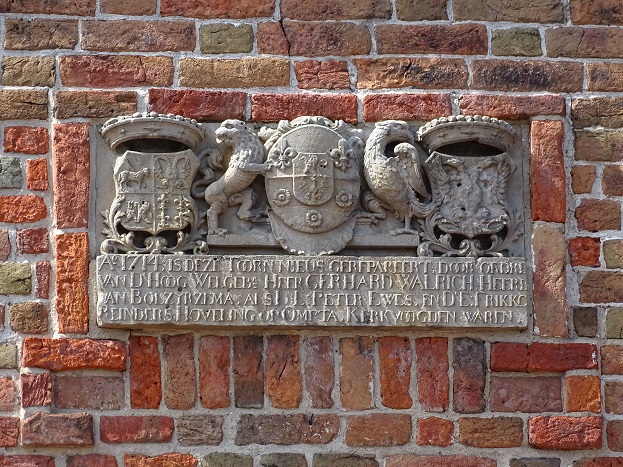 Gedenksteen herinnerend aan de reparatie van de kerktoren in ’t Zandt (1714):