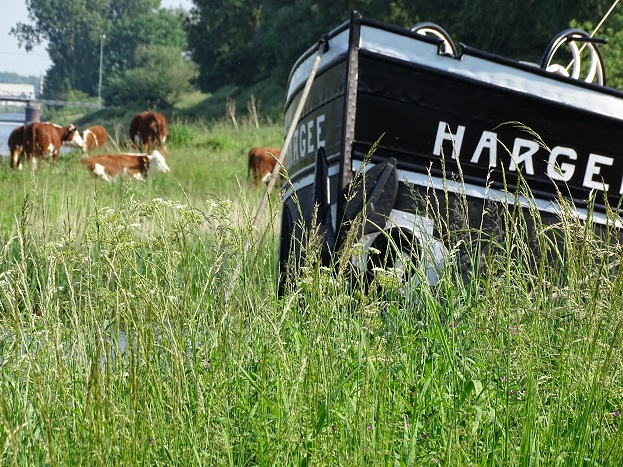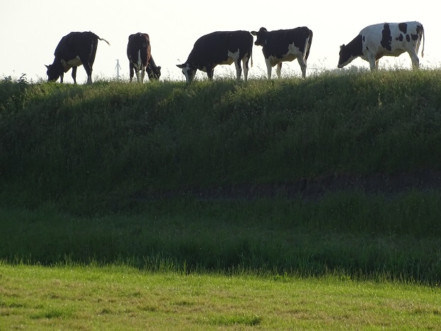 Bij Dorkwerd – paarden op afgehooid land doen zich tegoed aan de slootwal. Het klonk heel knapperig: