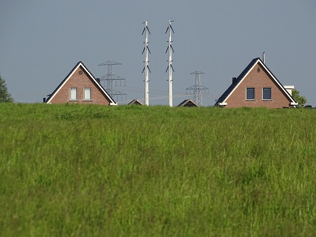 Bij Beswerd – de nieuwe hoogspanningslijn dringt zich visueel meer op dan de oude: