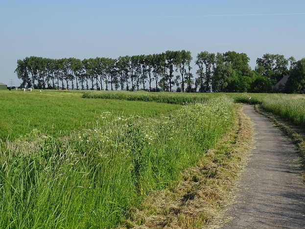 Anders dan bij Den Horn is de populierenrij bij Beswerd nog blijven staan: