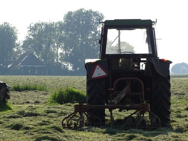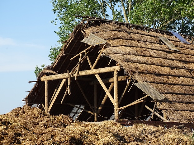 Nog steeds Beswerd – boerenschuur halverwege afbraak – de liggers van het gebint lijken ouder dan de zuilen: