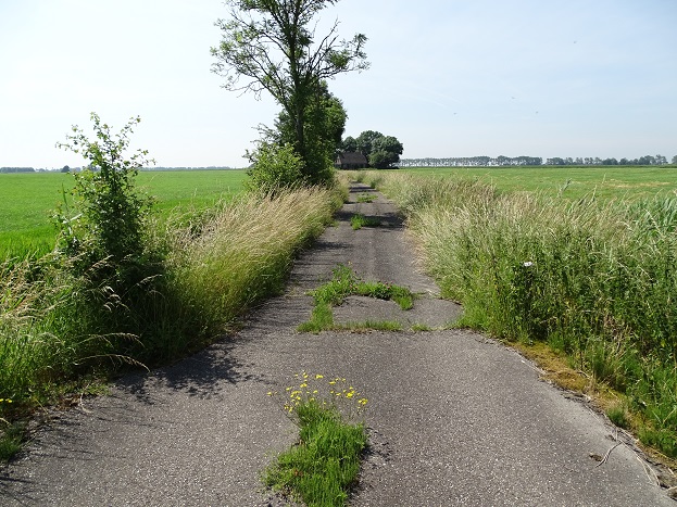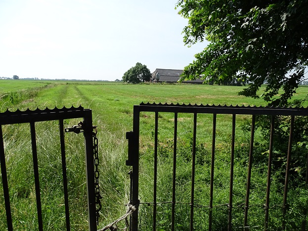 Mij was verteld dat je er zo heen kon gaan, maar helaas, er stond inmiddels een hek dwars over de weg, dat was vastgemaakt met een koetouw. Een vrouw uit het huis ernaast maakte zich bekend als eigenares en ontzegde mij de toegang. Ik moest maar naar de makelaar als ik belangstelling had: