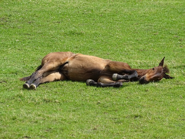 Onderaan de Reitdiepdijk bij Wierumerschouw – zonnebadend veulen: